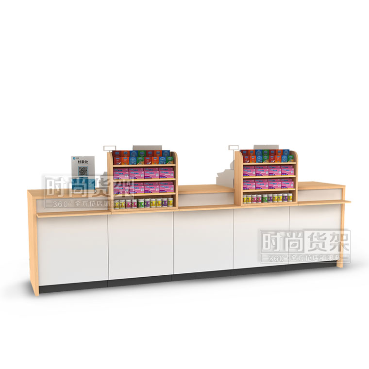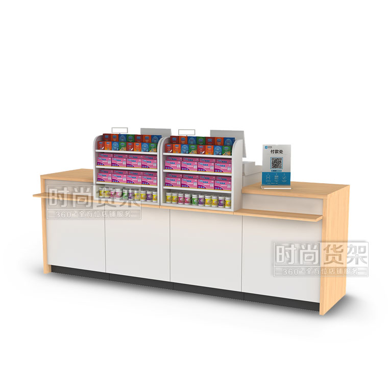 【產品名稱】紅櫻桃木紋藥店收銀臺/多功能藥店收銀臺/組合式收銀柜臺